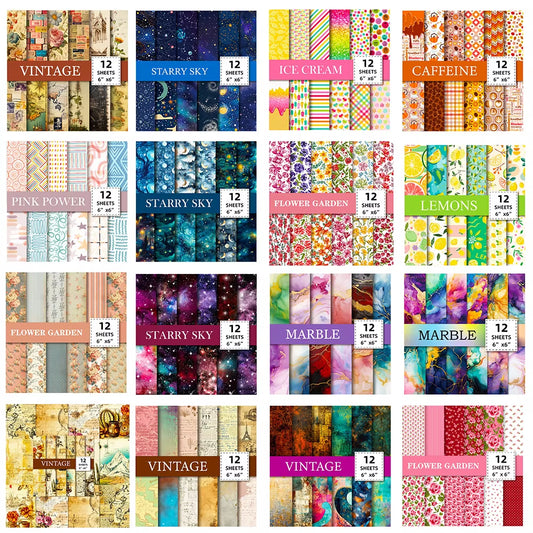 12 Sheet Scrapbooking Paper 15X15Cm, Christmas Journal Planner Paper Pad Cardstock Backgrounds Card for DIY Art Craft Decoration